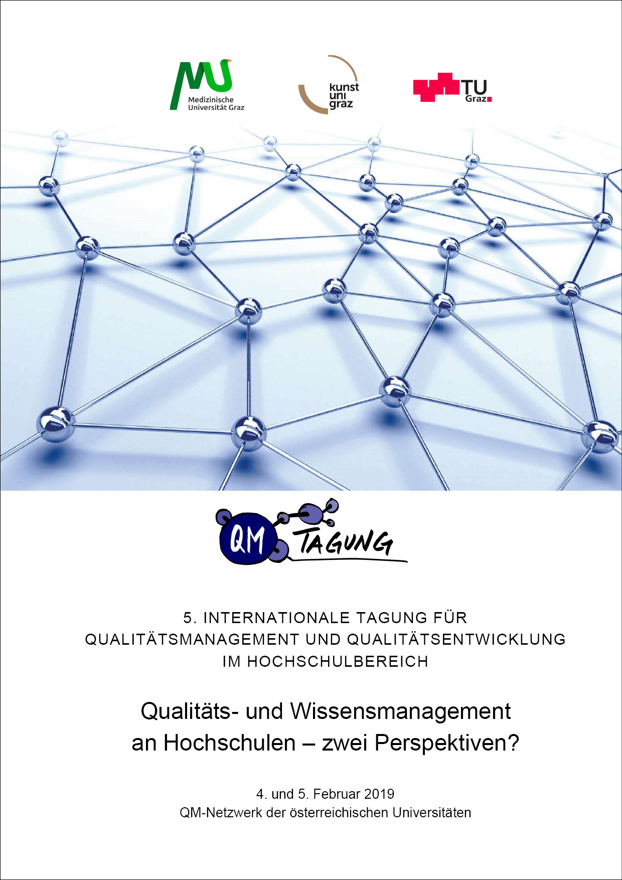 Unter dem Titel „Qualitäts- und Wissensmanagement an Hochschulen – zwei Perspektiven“ fand die 5. Internationale QM-Tagung des QM-Netzwerks der österreichischen Universitäten statt, zu dem nun der Tagungsband im Verlag der TU Graz als frei zugängliches E-Book erschienen ist. Der Band enthält elf ausgewählte Beiträge, die einen umfassenden Rückblick auf die Inhalte der Veranstaltung geben.